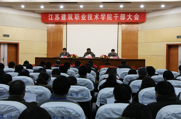 在上午的大会上,院长吴光林同志代表学校行政领导班子作述职报告。吴院长在报告中指出,2006年以来,学校在上级党组织和学校党委的正确领导下,坚持以科学发展观为统领,遵循“优化结构、充实内涵、提高效益、办出特色、创建示范”的工作方针,坚持职业教育方向不动摇,坚持建筑类专业特色不动摇,坚持走校企合作道路不动摇,以申报和建设国家和省示范院校为主线,抢抓机遇,深化改革,取得了显著成就。学校的综合实力进一步增强,社会知名度进一步提升,人才培养质量进一步提高,为建设建筑高职名校的奋斗目标打下了坚实的基础。六年来,学校紧紧抓住国家示范校项目建设的重要机遇期,聚精会神搞建设,一心一意谋发展。学生规模达12300余人,比2006年增加了2900人;教职工人数达701人,比2006年增加了200余人;教学仪器设备总值从2006年的4000余万元增加到现在的1.26亿元;国家精品课程由2006年的1门增加到目前的9门;校内实训基地近10万平方米,比2006年增加了6.1万平方米。学校在全校师生员工的团结努力下,真抓实干,锐意进取,成功跨越进入省级示范校、建设国家示范校、喜迎30年校庆、学校更名、通过新一轮评估等一个又一个里程碑。当前,“十二五”事业发展的蓝图已经绘就,学校正在高职教育发展的快车道上,继续保持持续快速健康稳定发展的良好势头。