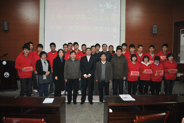 12月4日,纽约国际官网在多厅二举行上海中技学院——江苏分院2010-2011学年第二学期企业奖学金颁发仪式。上海中技桩业股份有限公司执行总裁、总工程师朱建舟、中技宣传教育部总经理陈虹等一行4人,纽约国际官网副院长张登宏、沈士德及相关职能部门、相关二级学院的领导参加颁奖仪式。