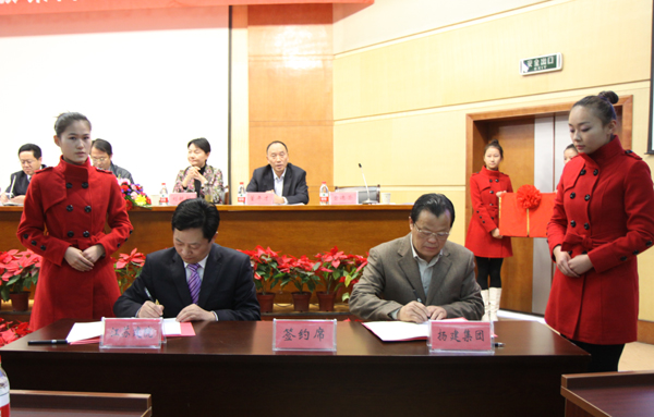 在欢快的音乐中,徐学军副厅长与江苏扬建集团曹德荣董事长共同为“扬建学院”揭牌,吴光林院长与曹德荣董事长代表校企双方签订“扬建集团-江苏建院”校企合作办学协议,全场响起热烈的掌声。
