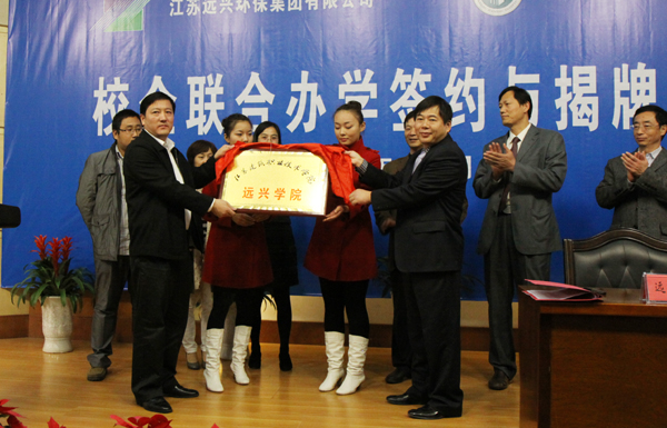 随后,张登宏、杭志远签订了校企合作协议,共同为“远兴学院”揭牌;张登宏为杭志远、於文霞颁发了客座教授聘书。市政学院院长王国平、远兴学院学生代表王冬雪分别代表承办学院和学生发言。