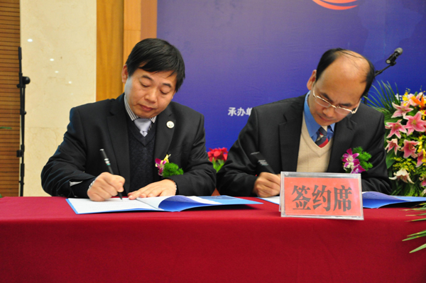 10月29日下午,在第六届中国博士后和海外留学人员徐州科技项目对接洽谈会项目签约仪式上,张登宏副院长与全欧华人专业协会联合会执行主席周盛宗博士共同签署了《共同组建中德信息工程学院》协议书,旨在人才培养、人才引进、科技创新、国际软件信息服务外包等方面进行合作,为当地经济发展不断提供高素质的专业人才,快步提升徐州企业在信息化、数字化和国际化方面的竞争实力。张登宏副院长应邀在签约仪式上发言。