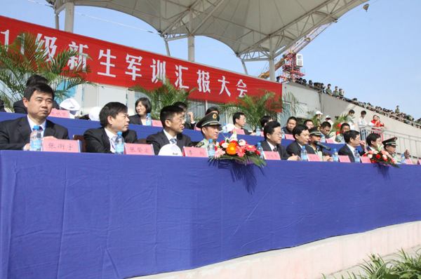 9月23日上午,纽约国际官网在西校区体育场举行2011级新生军训汇报大会。校领导袁洪志、吴光林、季翔、任留钦、张登宏、沈士德,中国人民解放军73101部队教导员孙利舒在主席台就座并观看了军训汇报。