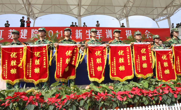 随后,院长吴光林与73101部队教导员孙利舒互换了锦旗,副院长沈士德作总结讲话。大会对在军训中表现突出的20个优胜排、110个卫生宿舍和331名优秀学员进行了表彰。