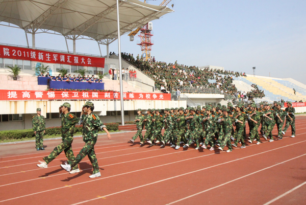党委书记袁洪志下达命令后,2011级军训成果汇报表演正式开始,5个营15个连75个排、4300余名参训学生进行了军训成果汇报,充分展示了军训所取得的丰硕成果。