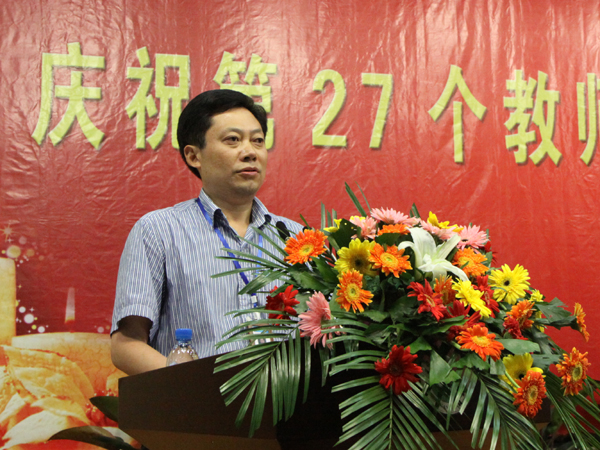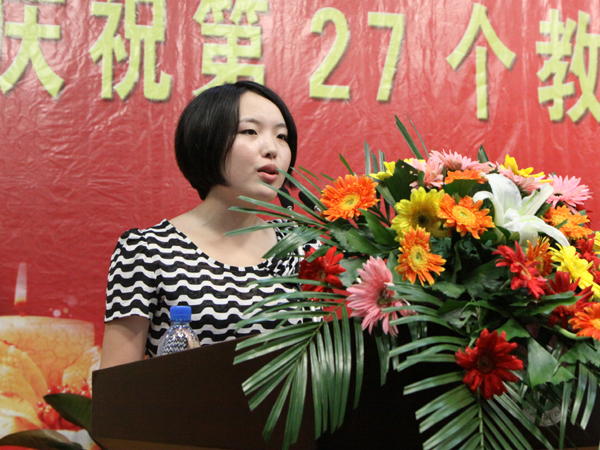 从事教育工作满五十周年的武荣权老师、优秀教师代表建工学院孙武老师、优秀辅导员代表设备学院黄梅老师分别发言。学生代表经济管理学院王彬馨同学向教师节献词。
