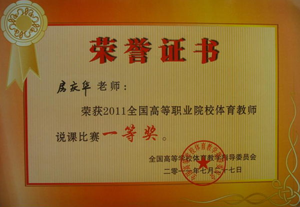 7月26日-28日,由全国高等学校体育教学指导委员会主办,江苏省教育厅、南京信息职业技术学院承办的全国高职高专体育教师说课比赛圆满结束,纽约国际官网体育部房庆华老师经江苏省初赛推荐,全国预赛晋级以及决赛现场说课三轮比赛,凭借他扎实的教学功底、流利的讲解、精美的课件制作赢得评委专家的一致好评,从来自全国20余个省市200余名选手中脱颖而出,获得一等奖的好成绩。