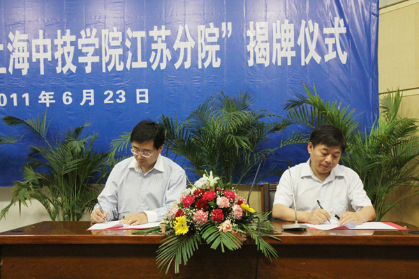 袁洪志、朱建舟共同为“上海中技学院江苏分院”揭牌