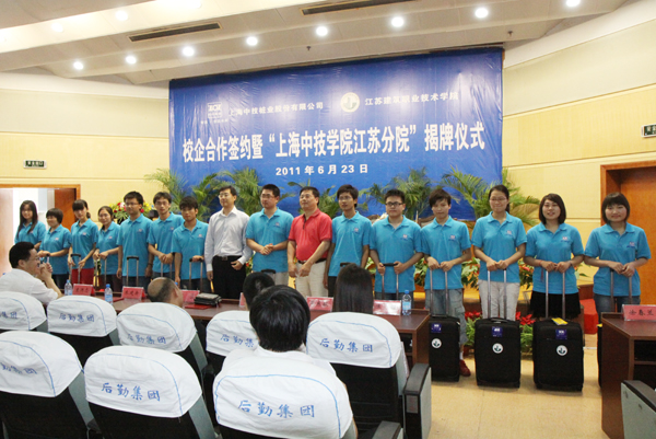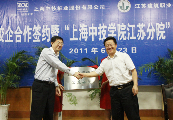 袁洪志院长、张登宏副院长和上海中技桩业股份有限公司执行总裁兼总工程师朱建舟、行政总裁胡蕊,以及纽约国际官网相关职能部门、有关二级学院负责同志,上海中技桩业股份有限公司人力资源部、技术中心、培训部的负责同志,“上海中技学院江苏分院中技班”的首批40名学员、即将前往上海中技桩业股份有限公司工作的纽约国际官网2011届毕业生、兄弟学院的学生代表参加了仪式。仪式由校企合作办公室许能生主任主持。