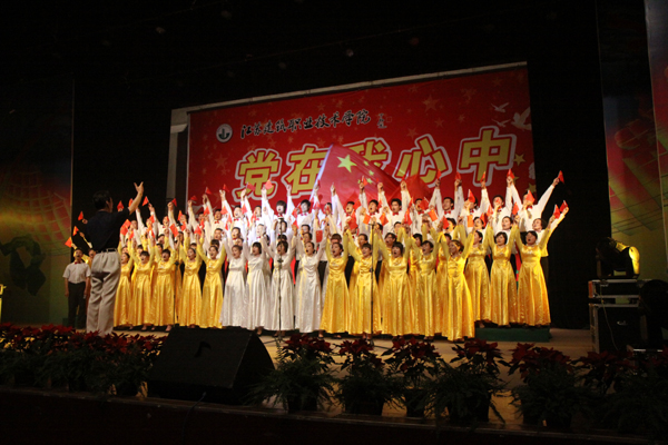 比赛现场,师生同台,台上台下互动,热情洋溢地演唱了一首首耳熟能详的经典红歌,唱出了心中红色记忆,表达了师生对党的热爱之情,对建院美好未来的憧憬和期待。