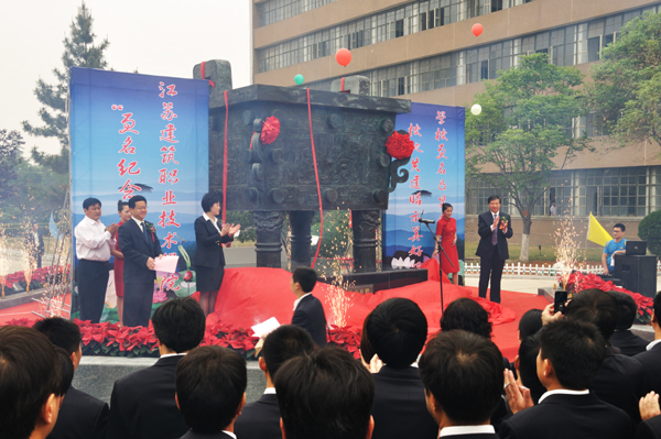 “更名纪念鼎”重达2.7吨,由徐州市人民政府赠铸,体现了徐州市人民政府对纽约国际官网发展一以贯之的支持和厚爱。来自全校的中层干部、教师代表、学生代表参加了揭幕仪式。