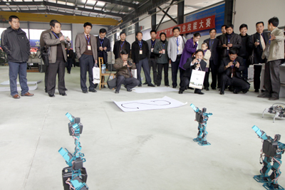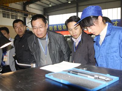 在机电实训中心,正在进行的技能大赛吸引了与会人员。