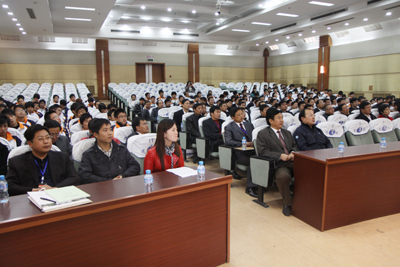 兴化市教育局招生办公室主任顾桂海、连云港东海县石榴高级中学博祥亮、09届毕业生造价06-1班李娟分别代表地方招办、生源单位、学生进行了交流发言。