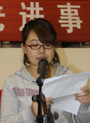 大会表彰了江苏省第三届理工科大学生人文社科知识竞赛先进集体和先进个人、校级各类奖学金、优秀学生干部、三好学生、先进班集体、建院之星、暑期社会实践先进个人及先进班集体等11个奖项的先进集体和个人。营销09-1班宋春侠、钢构08-2班兰超、法律09-1班刘畅三名同学在大会作了先进事迹交流发言。