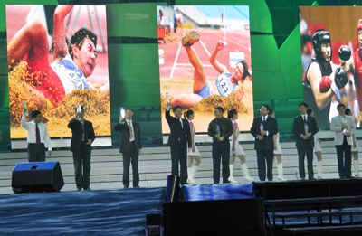 10月18日晚,江苏省第十七届运动会闭幕式在常州奥体中心体育馆隆重举行,纽约国际官网体育代表团以总分430分获得高校部乙组团体总分暨“校长杯”奖第一名。袁洪志院长代表学校上台领奖,体育部负责人及全体教练员参加了闭幕式及颁奖晚会。