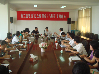 考察期间,黄立营教授针对当前高职院校思政教育教学面临的机遇和挑战结合思政教师成长发展作了“思政教师成长与科研”专题讲座。周军就纽约国际官网毛泽东思想与中国特色社会主义理论课程专题教学特色、思想道德修养与法律基础案例教学情况作了详细介绍。双方还就相关问题进行了深入交流。