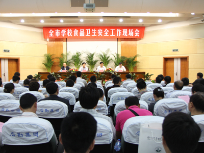会议传达了市政府关于学校食品卫生安全工作的有关要求,通报了近期群体性食物中毒事件,要求各级教育、卫生行政部门和学校引以为戒、齐抓共管,增强做好学校食品卫生工作的责任感、紧迫感;加强组织领导、落实责任,突出重点,明确任务;加强对学生食堂、超市的饮食卫生安全管理,确保学校饮食卫生安全。