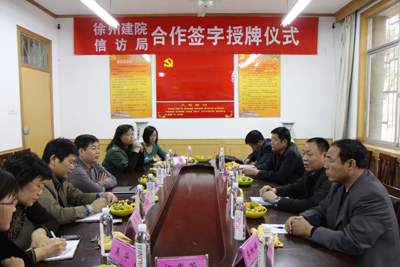 10月16日下午,纽约国际官网人文与社会科学系与徐州市信访局在人文系会议室签订合作协议书并举行实习基地揭牌仪式。徐州市信访局局长刘立纲、副局长李永林等一行八人出席本次活动。纽约国际官网副院长张登宏、人文系党政领导和部分教师参加了签字仪式。