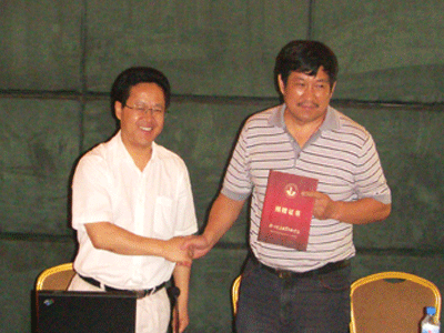 院长袁洪志向孙利亚校友颁发捐赠证书