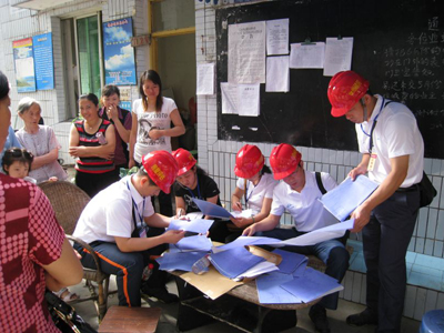 6月20日,我院第三批灾区房屋评估工作组赴四川开展工作。此次赴川工作组由季元担任组长,成员有王玮、孙秋荣、满传军、刘志坚,张宝军作为本次工作组的联系人再次前往。工作组于二十一日到达江油市后立即投入工作,对委托房屋进行详细评判并出具报告。二十四日工作组与台湾省土木技师公会援建团专家一行10人进行了技术研讨交流。张宝军于二十五日离开江油返回徐州,工作组其他五人继续在江油工作。