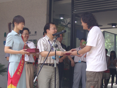 随后,在欢快的音乐中,我院院长袁洪志与徐州装饰装修行业协会常务副会长、徐州市建设局装饰办主任侍建怀共同为江苏水立方建筑装饰设计院揭牌。我院副院长季翔向江苏水立方建筑装饰设计院五名设计师颁发兼职教授聘书,江苏水立方建筑装饰设计院院长