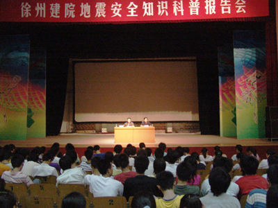 5月27日下午,应学院邀请,徐州市地震局副局长祁玉岭在院会堂为我院师生作了一场精彩的地震知识报告会。祁局长从地震的产生说起,深入浅出地讲述了有关地震的研究现状和难题,地震与百姓生活紧密相关的知识。祁局长的报告激发了同学们浓厚的兴趣,学生积极参与话题互动。报告会后,同学纷纷表示,此次讲座提高了大家对地震的科学认识,也增加了相关知识,可谓是收益良多。团委副书记李大勇主持了报告会。