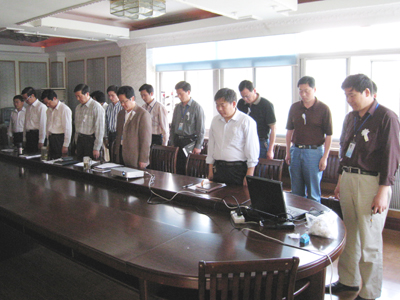 院领导王旭善、袁洪志、吴光林、任留钦、张登宏以及相关职能部门负责同志在第二会议室肃立默哀3分钟。