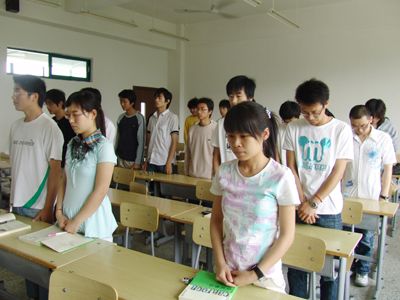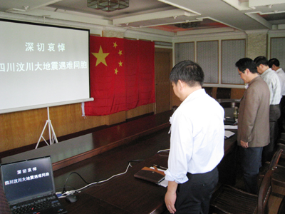 14时28分起,全院师生员工为四川汶川大地震遇难者默哀3分钟。防空警报在校园上空鸣响。