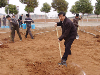 3月12日又一年的植树节,春回大地,万象更新。院领导王旭善、吴光林、季翔以及机关全体副科以上干部来到西校区大门旁边参加植树活动。大家一起挥锹培土、提水浇树,共同建设天蓝、山绿、水清、气爽的生态美好校园。