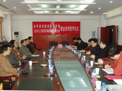 江苏水立方建筑装饰设计院有限公司是由在徐三家建筑装饰公司和数位建筑装饰专家共同组建的股份制公司。在签字仪式上,我院院长袁洪志与公司董事长康士君就深入推进校企合作进行了探讨。袁洪志院长代表学院祝贺公司的正式成立,欢迎企业进驻学院。他表示,学院将大力支持、积极配合企业的工作,为企业发展提供一切便利条件。袁院长说,学院支持企业的目的就是为培养教师专业实践能力、为学生了解企业文化和顶岗实习搭建一个好的平台,使教师真正成为“双师型”教师,学生真正成为“高技能型”人才,实现人才培养与企业用人的“零距离”对接。康士君董事长对学院为企业提供的便利条件表示衷心感谢。他说,企业将在原有的基础上,进一步扩大业务范围,融设计、施工、材料开发和推广应用等为“一条龙”,并通过与学院的合作,利用学院技术优势、人才优势和文化资源,开展项目合作和人才交流,努力把企业做大做强,不断提高企业的知名度,推动企业的持续健康发展。企业将专门为教师、学生开辟一定的空间,建立专门的制度,积极为教师提高水平和开展科研,为学生成长成才创造一个适宜的场所和环境,以深化校企合作,共同培育高技能人才。