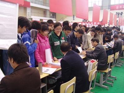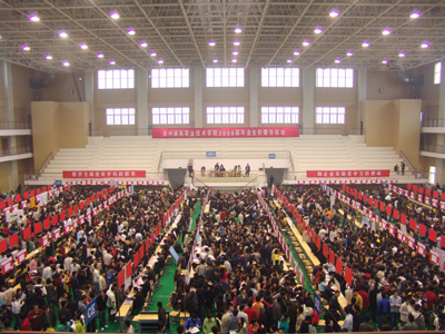 11月24日上午,我院2008届毕业生供需洽谈会在体育馆举行,来自北京、上海、江苏、山东等地的近300家用人单位前来我院招聘毕业生。洽谈会上,各用人单位对毕业生的专业、英语等级、计算机等级、综合能力等能力和水平提出了具体要求,其中,建筑工程、道路与桥梁工程、矿井建设、矿山安全等专业依然比较抢手,截止到记者发稿时,许多用人单位已经招聘到了符合条件的毕业生,部分毕业生当场就与用人单位签订了协议,还有一些低年级的学生到会场了解就业情况,提前为自己作了一份职业规划。