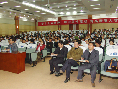 最后,王旭善书记在总结中说,徐教授的报告紧扣深刻领会十七大的主题,从理论和实践结合的角度,从五个一入手逐一展开,内容丰富,信息量大,资料详实,讲事情、讲国情、讲党情,对我们加深十七大精神,对十七大报告、十七大主题的理解和把握有很强的针对性和促进作用,使我们对国际形势,国内形势有了进一步了解和认识,进一步开拓眼界,对十六大以来所取得的伟大成就有了总体的了解,对科学发展观全面系统的分析具有理论性、学术性,催人奋进。他希望全院党员、干部用十七大精神武装头脑,学习领会十七大精神,把十七大精神落实到实际。他指出认真学习十七大文件,掌握十七大精神是全院党员、干部的一项首要政治任务,只有学十七大精神,才能创示范高职,育高素质人才。