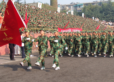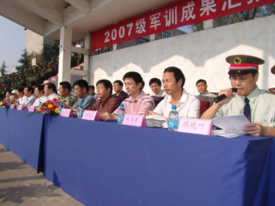 9月23日上午,我院举行2007级新生军训会操表演。院党委书记王旭善、副书记吴光林、副院长季翔、任留钦、张登宏出席并在主席台就座观看了汇报表演。此次大会还特别邀请了73101部队政治部主任钟成斌。院党委副书记吴光林作总结讲话。在主席台就座的还有学院07级新生军训工作领导小组成员。