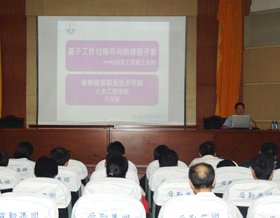 9月8日,我院教师王军强在学术报告厅作了题为《基于工作过程导向的课程开发》的报告,他以抹灰工程施工为例,介绍了工学结合的课程开发思路、方法、模式、特点以及施工员职业学习领域等等。院长袁洪志主持了报告会,副院长季翔、张登宏与全体中层干部、部分教师一起听取了报告会。此次报告会还是我院第五期教师能力培训中的一个重要环节。