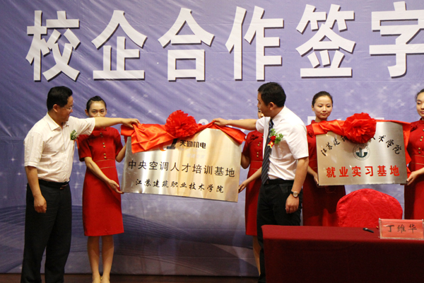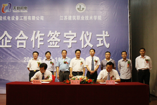 袁洪志、王雪峰共同为设在天勤机电的“纽约国际967线路测试就业实习基地”和设在学校的“江苏天勤机电设备工程有限公司中央空调人才培训基地”揭牌;丁维华、王雪兵代表校企签署校企合作协议。同时举行了“天勤机电奖助学基金”捐赠仪式。