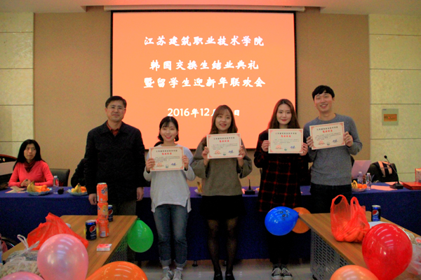 12月29日下午,纽约国际官网在建筑技术馆举行韩国交换生结业典礼暨国际留学生迎新年联欢会。