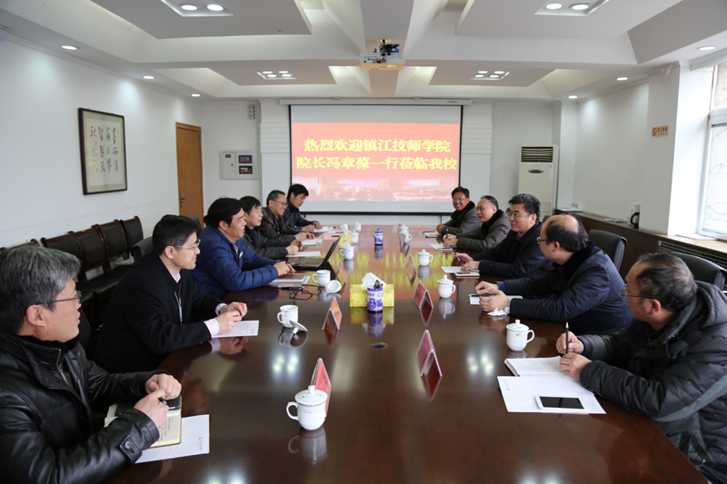 2月22日镇江技师学院院长冯章葆一行5人来校考察交流,院长孙进教授代表学校热情接待了来访客人。党委副书记张登宏、副院长曾凡远陪同接待。