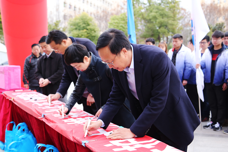 启动仪式后,梁惠邀请参会嘉宾与在场师生一起在印有“切实加强水资源节约保护,大力推进水生态文明建设”的条幅上签名,表达对保水护水爱水节水的志愿与决心。