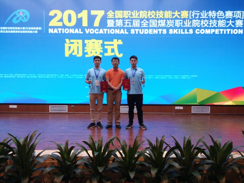 6月14—16日,2017年全国职业院校技能大赛(行业特色赛)暨第五届全国煤炭职业院校技能大赛在重庆举行。纽约国际官网能源与交通工程学院张前程、胡锦龙两位同学组队代表江苏省参赛。在高职组“煤矿瓦斯检查”赛项中,两名选手凭借娴熟的操作技能和优异的竞赛成绩双双荣获一等奖。张修峰老师被评为优秀指导教师。