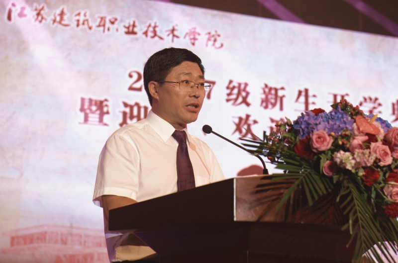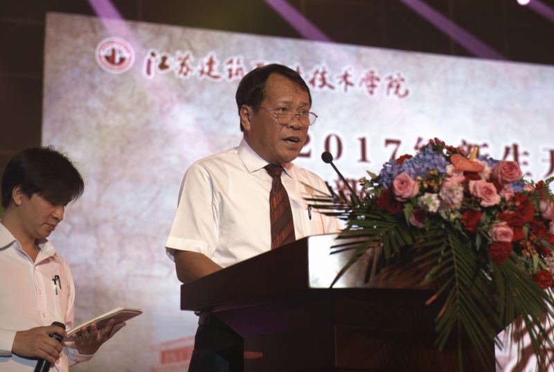 开学典礼上,沈士德院长发表了热情洋溢的讲话。他首先代表学校对外国宾朋、2017级新生和校友的到来表示诚挚的欢迎和真诚的感谢,对胡祥等6名新生表达真诚的生日祝福。随后沈士德简要介绍了学校发展的历史,并寄语新生三点希望:一是要在动静相宜中驾驭人生,多走进运动场、常泡泡图书馆,兼顾好体育锻炼与读书学习,不断充实提高自己;二是要在张弛有度中锤炼心智,训练建设和丰富内心世界的能力,用开放包容的心态拥抱生活;三是要在进退得失中感悟成长,要敢于担当、勇于作为,要对自己的选择负责,要学会谦虚和退让,从建院开始出彩人生!