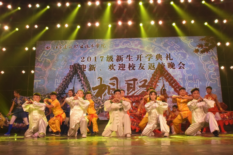 晚会上,大学生艺术团和学校老师带来的舞组合《祝福》《建院一家亲》、二胡齐奏《战马奔腾》、健美操《炫舞青春》、舞蹈《海魂》《花帽子》、表演唱《工地戏雨》、歌曲《建院》、女声独唱《春暖花开》、武术《力量》等节目,精彩纷呈、高潮迭起,为典礼增添了浓郁的喜庆氛围。(宣传部)