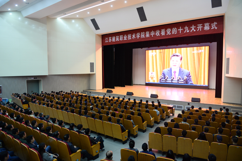 在学校会堂,校领导孙进、沈士德、梁惠、曾凡远、刘海波和近500名师生共同观看了大会盛况,认真聆听习近平总书记的报告,并不时在笔记本上做记录。开幕会结束后,大家备受鼓舞,争相热议习近平总书记报告内容,深切感受到习近平总书记的报告主题鲜明、内涵丰富、振奋人心,纷纷表示要认真学习贯彻习近平总书记重要讲话精神,紧密结合实际工作,努力促进学校更好更快发展。