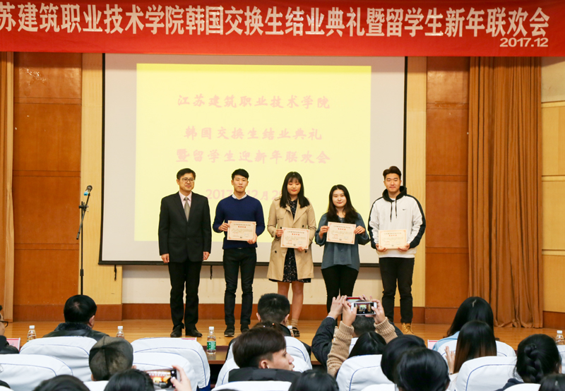 结业典礼上,曾凡远副院长为4名交换生颁发了结业证书,并代表学校祝贺4名韩国同学完成一年交换学习顺利结业。他充分肯定了韩国同学在校期间的良好表现,希望同学们回国后不要忘记江苏建院和师生情谊,希望他们能做中韩文化交流的友好使者,为促进两国人民的了解和友谊作出自己应有的贡献!曾凡远勉励全体留学生要好好学习,为顺利完成留学学业奠定基础。