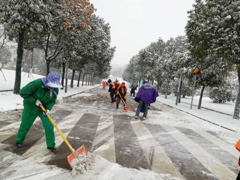 1月4日,2018年的第一场雪如期而至,雪花纷飞中的校园雪景给全校师生们带来了一份冬的喜悦,但道路积雪、路面湿滑等也给广大师生生活带来诸多不便。根据学校除雪防寒防冻应急预案统一部署,后勤管理服务中心提前准备相关除雪防滑设备配置,做好校园管道防寒防冻,并从清晨开始全天候除雪工作。
