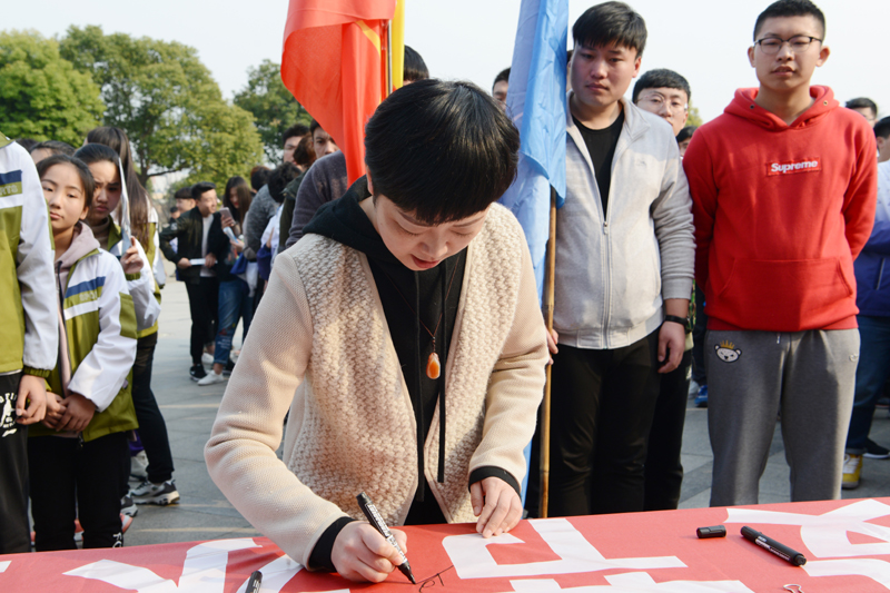 启动仪式后,梁惠邀请参加活动的嘉宾与在场师生一起在印有“实施国家节水行动,建设节水型社会”条幅上郑重签下姓名,表达了关心水、爱惜水、保护水的志愿与决心。活动最后,现场举办了“水传递”竞赛活动,让在场领导、师生动共同体会水的珍贵。