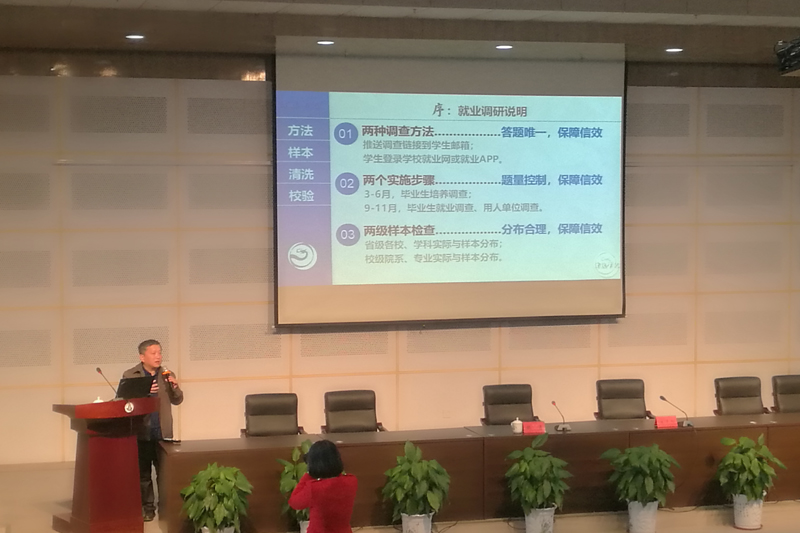 为了进一步健全就业与招生计划、人才培养、专业调整、经费划拨的联动机制,完善学科专业预警、优化管理办法,促进人才培养与经济社会发展紧密对接, 4月13日下午,招生与就业处召开了2017届毕业生就业质量年度报告解读会,特邀江苏省高校招生就业指导服务中心评价服务部蒋晨阳部长担任解读专家。