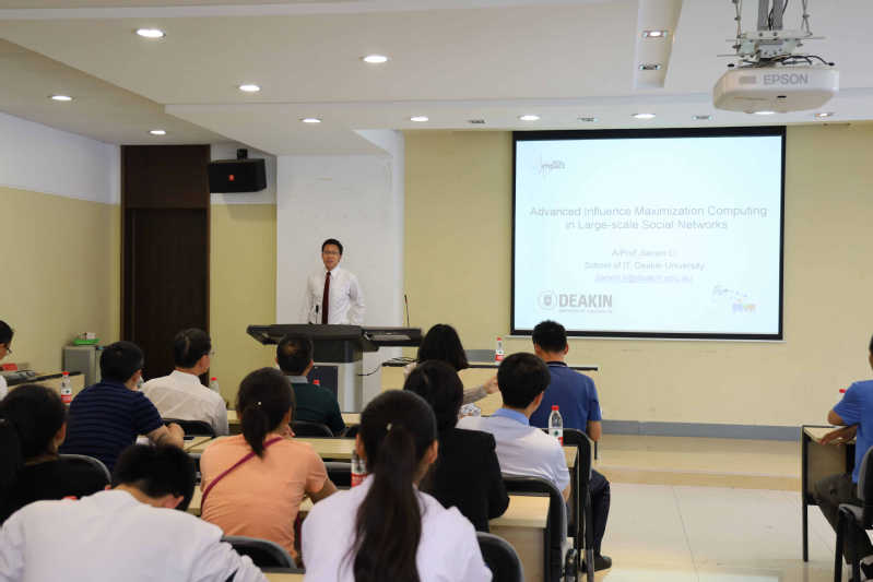 6月初,信电工程学院开展了两次与境外高校交流活动,邀请了来自香港中文大学、澳大利亚迪肯大学、台湾建国科技大学等高校的数名教授来我院交流指导。澳大利亚迪肯大学教授李建新以“Advanced Social Influence Maximization Computing over Large Social Networks”为题做了专题讲座。香港中文大学教授任德盛以“精准教育”为题,分享了他对远程通信和人工智能发展的想法。台湾建国科技大学许钊兴教授、沈慧宇副教授来校指导学院品牌专业建设工作,在课程建设、师资队伍建设、校企合作等方面进行深入交流,对悉尼协议申报、国际证照与国际发明展的筹备和参赛流程进行详细介绍,亲自指导了毕业生的毕业设计,在组建了混编教学团队建设和相关教师教材编写达成合作意向。