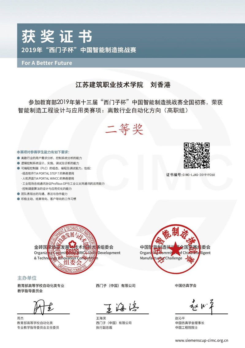 据悉,“西门子杯”中国智能制造挑战赛由教育部高等学校自动化类专业教学指导委员会、西门子(中国)有限公司和中国仿真学会联合主办,已成为中国智能制造领域规模最大、规格最高的国家A类竞赛。竞赛内容涉及智能制造领域中的科技创新、产品研发、工程设计和智能应用等,为我国智能制造发展培养和选拔具备解决复杂工程问题的技术及创新人才。