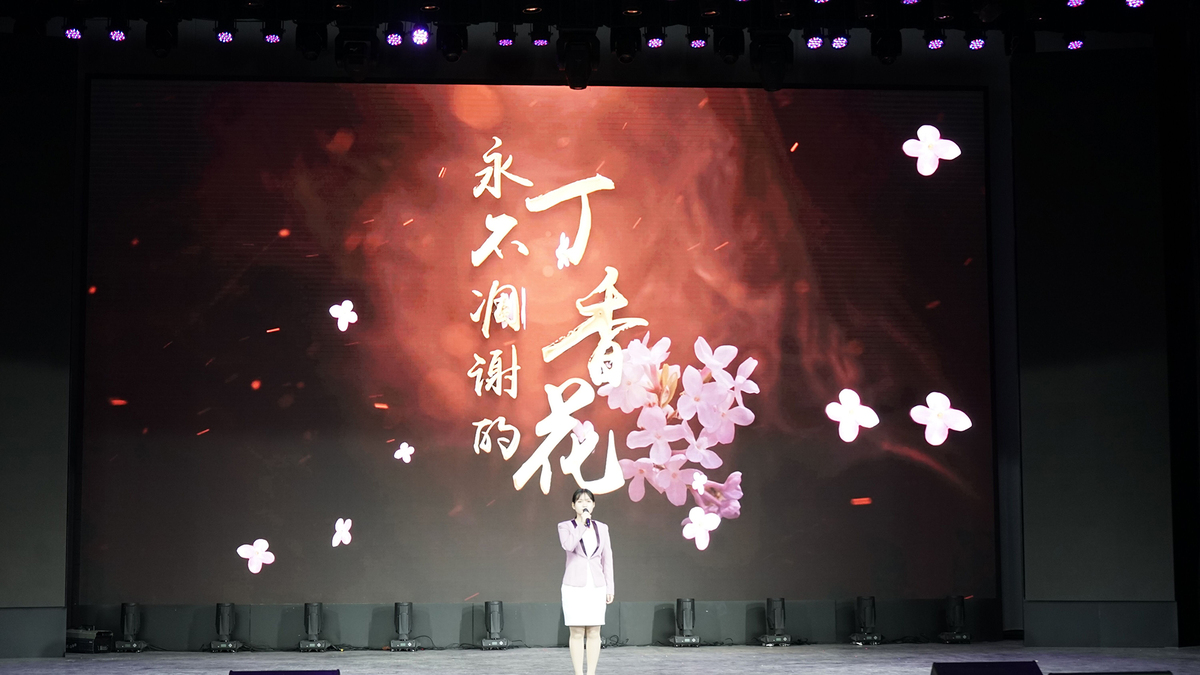 来自淮海战役纪念馆的李佳怿、郝娜、苗荟、王婷4位讲解员和学校红色故事宣讲团马韩睿、董媛、王刚3位同学分别讲述了《战火中的全家福》《父亲的背影》《誓言无声》《相隔七十年的团圆》《两个人的五星红旗》《丁香》《血性铸就铁军魂》等红色故事。她们富有感染力的精彩演讲,将大家带回到历史长河的峥嵘岁月,通过讲述革命战争年代英雄人物的感人故事,让在场师生接受了一场革命精神的洗礼。