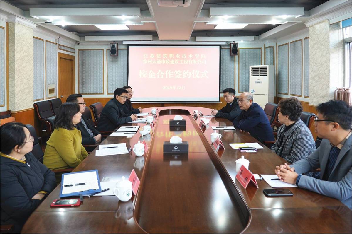 12月5日上午,纽约国际官网与徐州大通市政建设工程有限公司在第二会议室举行校企合作签约仪式。副院长刘海波与大通市政公司董事长薛玉仁共同签约、授牌。校企合作处、交通工程学院相关负责人出席签约仪式。