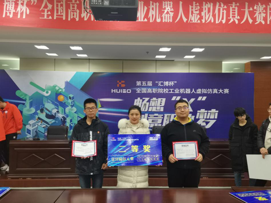 日前,第五届“汇博杯”全国高职院校工业机器人虚拟仿真大赛在常州机电职业技术学院落下帷幕。由刘明明、戚海永老师指导的机电17-4袁博、机制18-2李泽明组成的团队在工业机器人系统虚拟调试赛中获得二等奖。